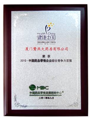 由中國藥品零售發(fā)展研究中心(MDC)、中國醫(yī)藥企業(yè)合作與發(fā)展組織(CPEO)、中國藥品品牌評審委員會(huì)主辦的“健康中國?2010中國藥品品牌評選活動(dòng)”,經(jīng)過為期半年的品牌征集、品牌入圍和專家評選階段,于6月21日公布了“健康中國?2010中國藥品品牌榜”榜單,鷺燕大藥房榮登“健康中國?2010?中國藥品零售企業(yè)綜合競爭力百強(qiáng)”企業(yè)。 |