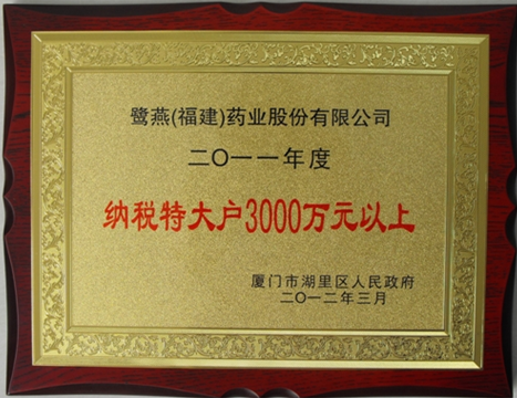 近日,廈門市湖里區(qū)隆重召開2011年度納稅先進企業(yè)表彰大會,鷺燕(福建)藥業(yè)股份有限公司以超3000萬的突出納稅貢獻榮獲“2011年度廈門湖里區(qū)納稅特大戶”稱號。